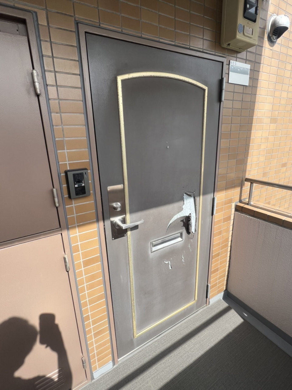 扉の剥がれ部分はどうして剥がれたかは不明です。