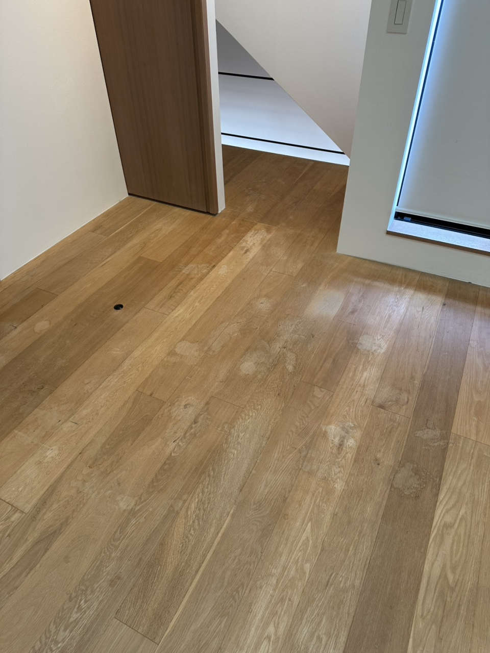 先日、フローリングのシミ補修のご依頼を受け、現場に伺うと…想像以上に床がシミだらけ!