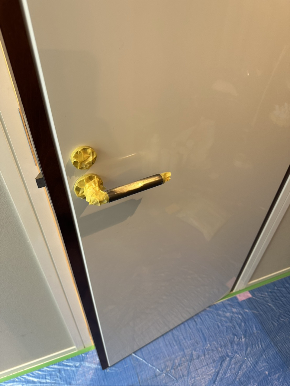 ドアノブの塗装がかなり剥がれており、よく見ると表面には凹凸や巣穴のような穴も出ている状態でした。