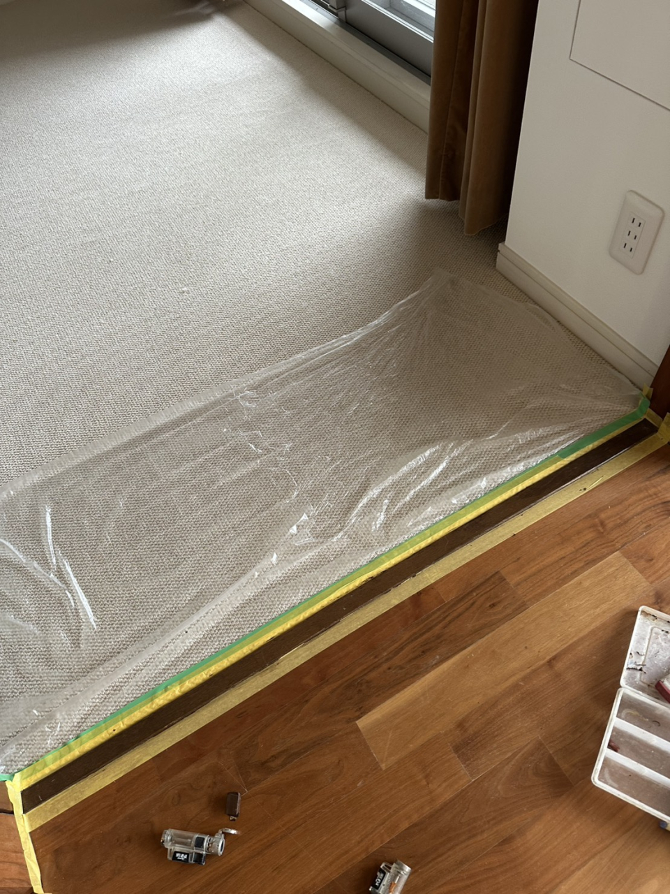 まずは補修材が絨毯に付かないよう、しっかりと養生を行います。