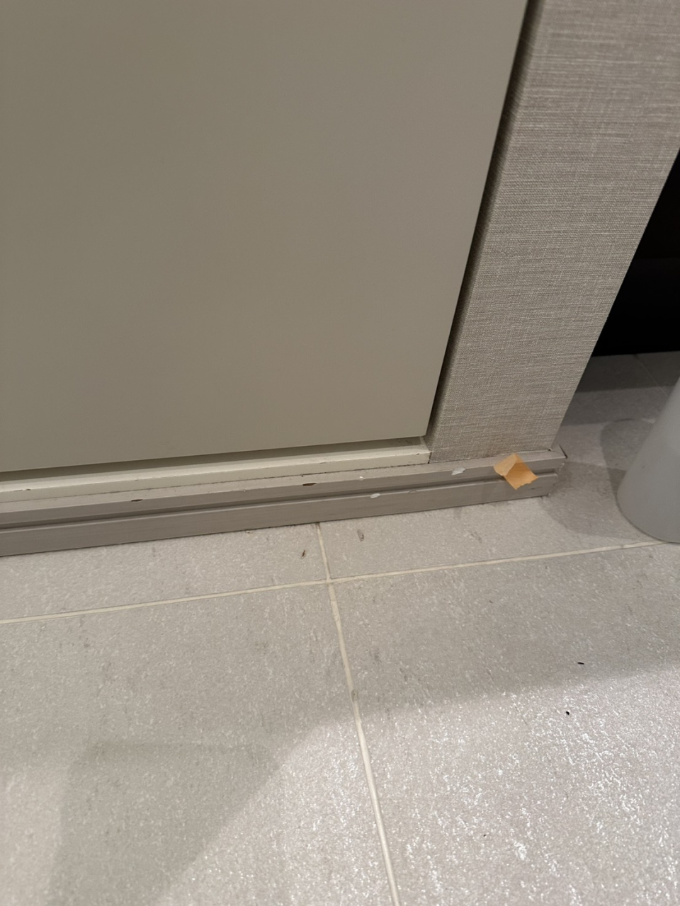 その後、既存の巾木の色に近づけるように調色し、筆で丁寧に描き込みながら質感と色味を再現。