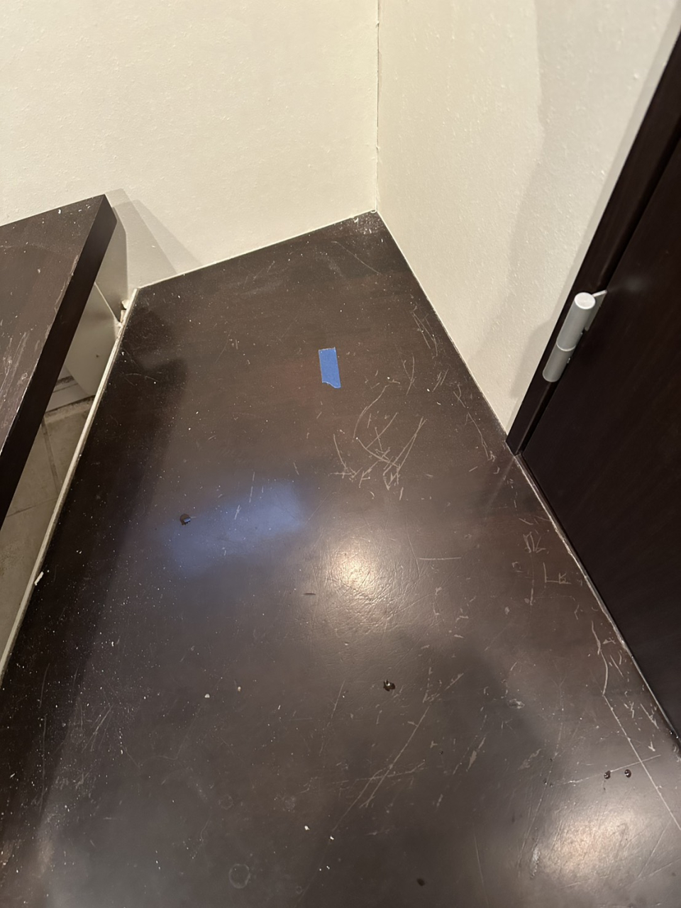 まずは補修材を使用し、ペーパーで丁寧に研磨しながら平らに整えていきます。