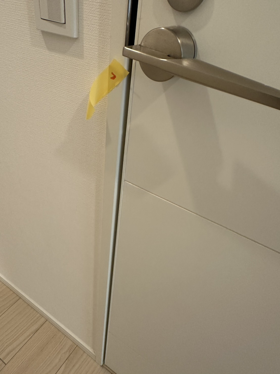 中央区のマンションにて、扉シートの膨れ補修を行いました。
